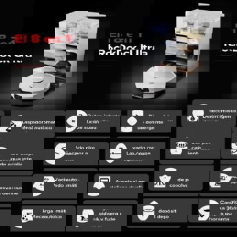 roborock S8 MaxV Ultra Robot Aspirador Base de Carga Todo en uno, FlexiArm Design, Aspiradora y friegasuelo 10.000 Pa, DuoRoller Riser, VibraRise 3.0, HyperForce, Reactive Al 2.0, Blanco